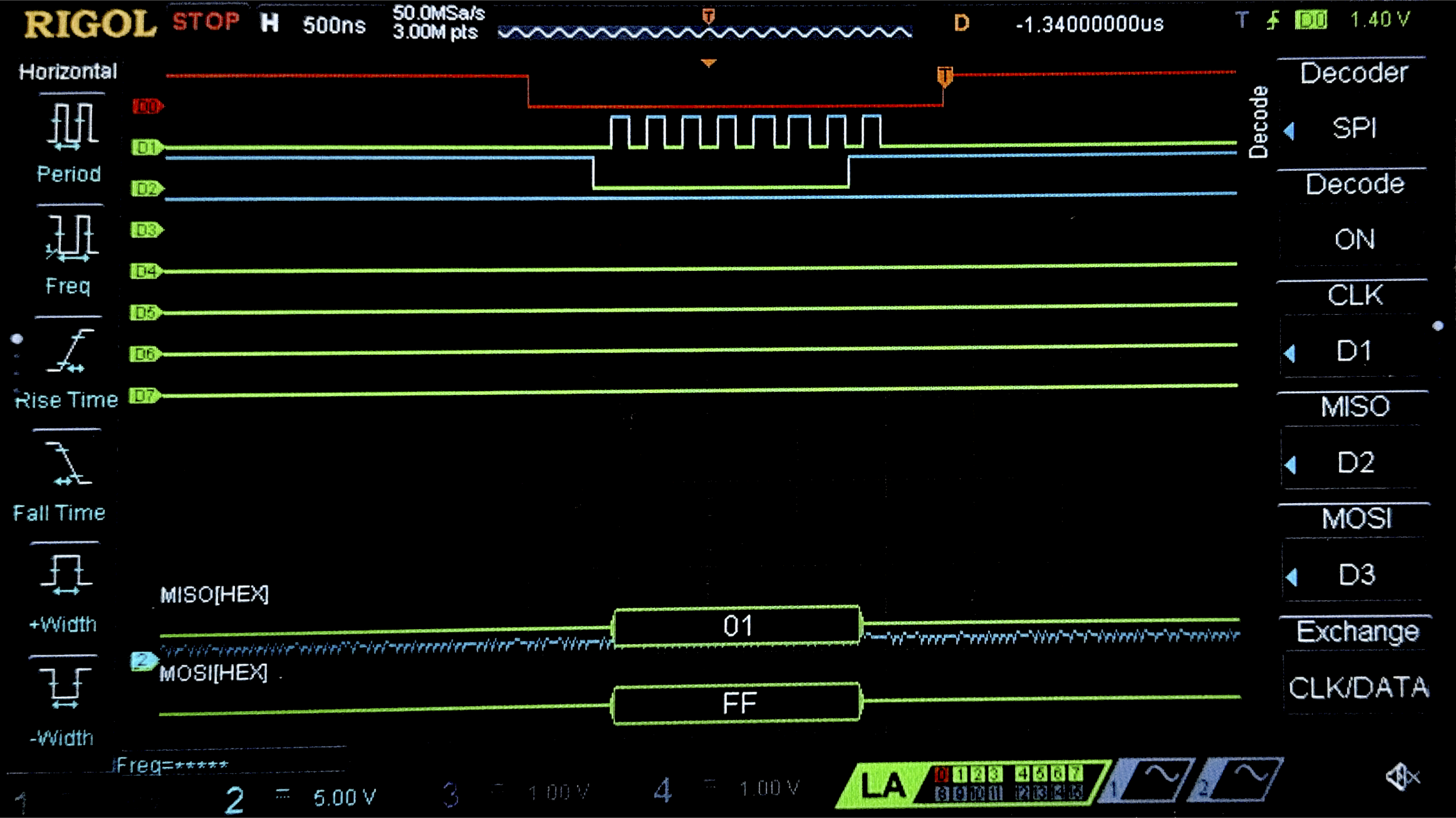 Figure 3: Logic analyzer trace of SPI communication between MCU and SD Card.